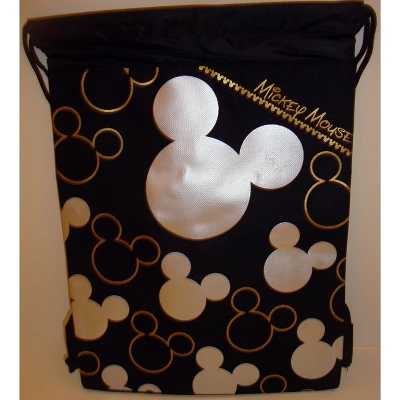 - DESIGN: Stylish black drawstring backpack featuring iconic Mickey Mouse silhouettes in white with gold outline accents for a classic Disney look