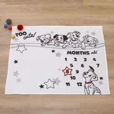 - Playful 101 Dalmatians Milestone Baby Blanket creates a picture-perfect photo opportunity for each month!