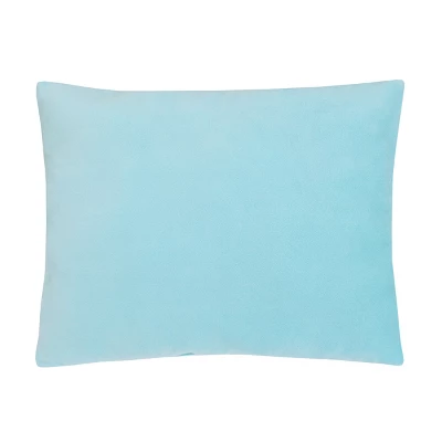 The perfect finishing touch for your Doc McStuffins Toddler Bedding Set – a coordinating Doc McStuffins Cuddle Time Toddler Pillow! This pillow is made from super soft plush velboa fabric, with a printed design on the front of Doc McStuffins and her favorite friends, Stuffy, Lambie and Hallie, all surrounded by puffy clouds, happy flowers and a bright rainbow, in shades of pink, purple, aqua and white accented with pops of yellow. The back of the pillow is solid aqua. Measuring 12″H x 15″W, this pillow is perfect for naps, relaxing or to take on-the-go. Coordinates with the Disney Doc McStuffins Cuddle Time 4-Pc Toddler Bedding Set.