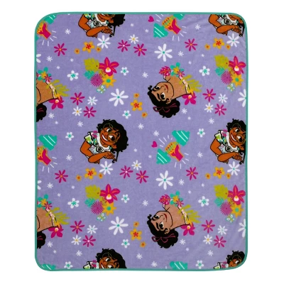 The Encanto Power Trio 5-Piece Toddler Bedding Set features Mirabel and her sisters in front of their family villa, surrounded by bold colors of turquoise, purple, green and blue. The collection has a reversible comforter, flat sheet, fitted sheet with elastic edges for a snug fit, reversible standard size pillow case, and an extra soft and cozy plush blanket. Everything you need to decorate your child’s room in one convenient bundle! All items fit on a standard size toddler bed, using a 28″ x 52″ crib/toddler mattress.