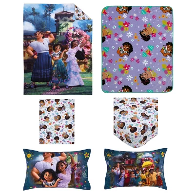 - Featuring favorite Encanto characters, this 5-Piece Toddler Bedding Set bundle includes everything you need to decorate your little girl’s bedroom!