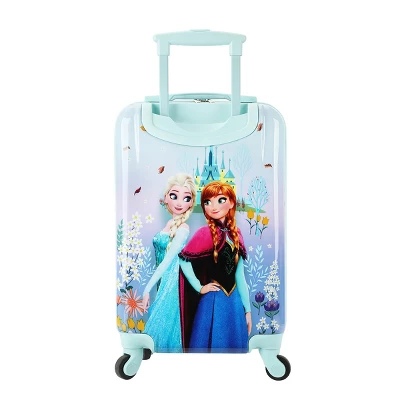 Make every journey magical with this Frozen 20″ rolling luggage featuring a vibrant image of Elsa and Anna in front of Arendelle’s castle. This luggage includes 4 smooth-rolling wheels and a retractable handle for easy navigation. Its durable exterior and interior valet straps ensure your belongings stay secure and organized during travel. Made from high-quality ABS and PC materials, this luggage can be wiped clean, making it a practical choice for any traveler.