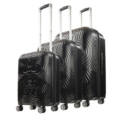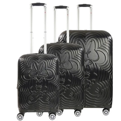 The adorable and popular Minnie Mouse shows a playful on the front of this hard-sided 3-piece suitcase that is perfect for carrying on or checking in for your next long vacation. -Comes with a 29″ Expandable , 25″ Luggage , and 21″ Expandable luggage. -Made with durable ABS Plastic and Pc film with a playful molded Minnie Mouse on the front. -Supported on 8 stable spinner wheels for hassle-free wheeling. -Convenient aluminum telescopic handle is easy to grip. -Sizeable polyester-lined main compartment is divided for easy organizing. -Interior includes 2 mesh zip pockets and a zip wet dry compartment for personal essentials. -Clothing compression straps help prevent contents from shifting/wrinkling.-Expandable for more space with a 2 inch gusset on 29″ and 21 inch only. -Retractable top and side carry handles on t 29″ suitcase for loading into trunks, cars, and overhead bins. -The 25″ and 21″ only have a retractale top carry handle.-Easy to spot clean. -5 year warranty. -Silver hardware.-30.5H X 20.5W X 13D-Imported.-This product may contain a chemical known by the state of California to cause cancer, birth defects, or other reproductive harm. www.p65warnings.ca.gov