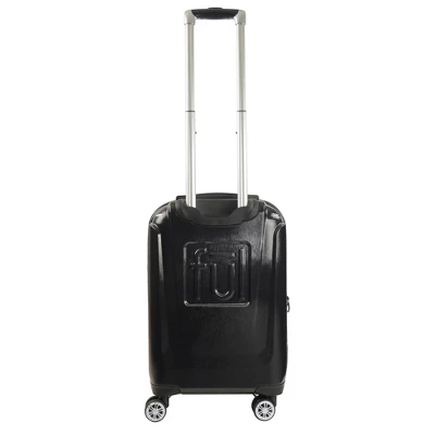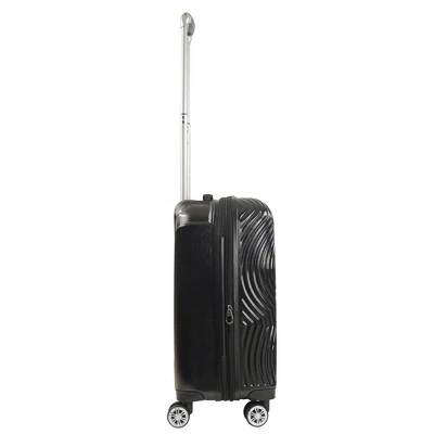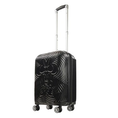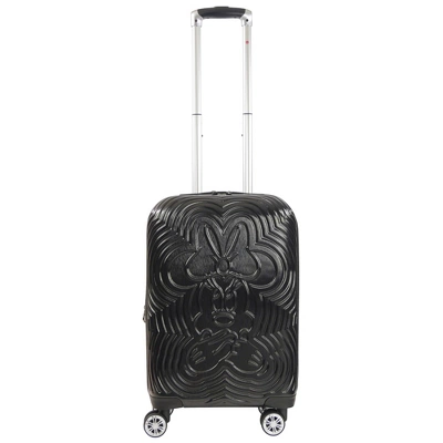 The adorable and popular Minnie Mouse shows a playful on the front of this molded hard-sided 21-inch carry-on spinner suitcase that is perfect for carrying on for your next vacation. -Made with durable ABS Plastic and Pc film with a playful molded Minnie Mouse on the front. -Supported on 8 stable spinner wheels for hassle-free wheeling. -Convenient aluminum telescopic handle is easy to grip. -Sizeable polyester-lined main compartment is divided for easy organizing. -Interior includes 2 mesh zip pockets and a zip wet dry compartment for personal essentials. -Clothing compression straps help prevent contents from shifting/wrinkling.-Expandable for more space with a 2 inch gusset. -Retractable top and side carry handles for loading into trunks, cars, and overhead bins.-Easy to spot clean. -5 year warranty. -Silver hardware.-22H X 14W X 9.5D-Imported.-This product may contain a chemical known by the state of California to cause cancer, birth defects, or other reproductive harm. www.p65warnings.ca.gov