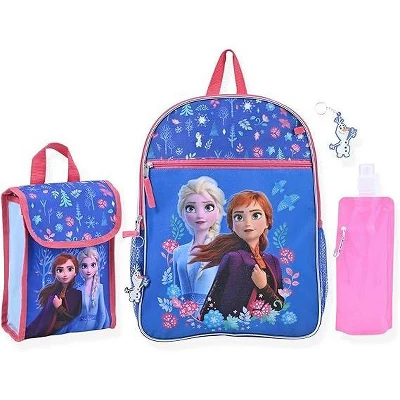 These Officially Licensed Disney Princesses backpacks are perfect for any little princess girl that wants to look adorable and stylish at School or Camp. These fan favorites feature some of the most iconic Disney Princess characters like Cinderella, Ariel, Tiana, Jasmine, Belle, Mulan, Snow White, Moana, Elsa, Anna, Stitch and Minnie Mouse! Give your kids some excitement with our great variety of styles to choose from, whether it’s our 6-piece design backpacks that comes with lunch bag, water pouch with snap hook and 2 keychains or our standard design backpacks with keychain or our shiny front cover standard ones with 1 Large compartment no mesh side pockets. Measuring approximately 16” x 12” x 5”, Our girl bookbags have more than enough space for all your school supplies and needs. Included are 2 Large main compartments that are perfect for Books, Folders, Laptops, Notebooks, and other large accessories as well as 2 mesh side pockets and a cubby or locker loop for easy storing. Completed with adjustable padded shoulders straps that are designed to relieve stress from the shoulders and backs of kids. Get the perfect fit by adjusting the straps based on the weight and height of each child. Developed with high quality materials and fabrics designed to last through long days at School or Camp. You can be confident these Knapsacks for girls will stand the test of time. Our Girl Bookbags is the perfect gift for any little girl or fan that wants to travel in style and loves Disney Movies and their iconic princesses. Light up a Birthday, Christmas, or any holiday with an adorable gift that your special girl will love.