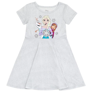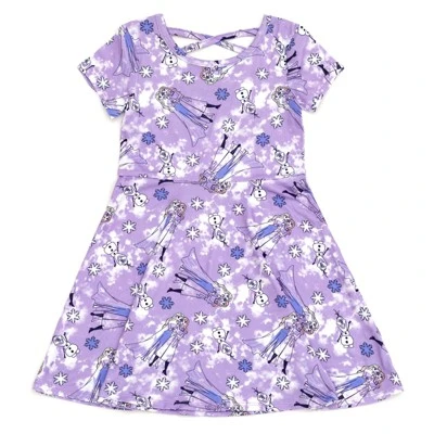 Your little girl is ready for a day filled with Disney magic in these cute Disney dresses! This stylish set includes 2 short sleeve skater dresses featuring fun and colorful Disney artwork your kid will love to wear! Choose from vibrant designs of iconic characters like Lilo, Stitch, and Angel from Lilo and Stitch, Elsa, Anna, and Olaf from Frozen, Jack Skellington, Sally, and Zero the ghost dog from Nightmare Before Christmas, and Mickey Mouse and friends Minnie Mouse, Donald Duck, Goofy, Daisy Duck, and Pluto. Made of a soft and lightweight material that keeps your child comfortable, these fashionable Disney dresses are the perfect outfits for all day adventure and play!
