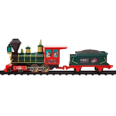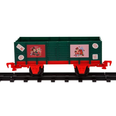 Get the holidays on track with this Mickey Mouse and Friends ”Making Christmas Magical” Train Set. Mickey, Minnie, Donald, and Goofy are among those who are riding the rails with this festive remote-control toy train set that plays Deck the Halls, character phrases, bells, and whistle. There’s even a snow-covered flat car with figures of the whole gang celebrating with singing and gifts. Next stop fun! Genuine, Original, Authentic Disney Store Product.