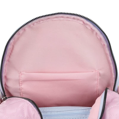 - Custom Design: This adorable Disney mini backpack has been custom designed in pastel colors with quilted details, and features 3D Mickey and Minnie characters that move towards each other in kissing poses.