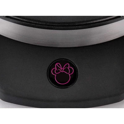 Waffle maker makes approximately 7″ Waffle with Minnie Mouse design in Plate, power & ready light in shape of Minnie, non-stick cooking plates, non-skid rubber feet and convenient cord wrap.