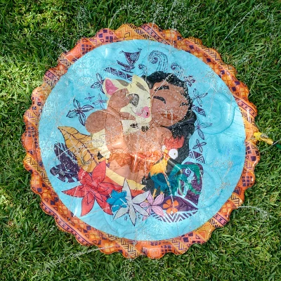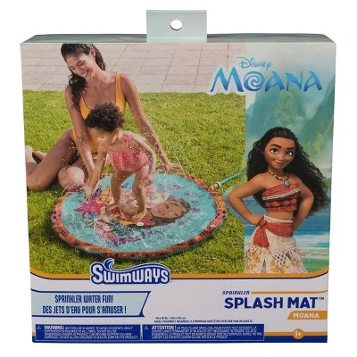 Splash around with your favorite Disney Princess, Moana with the Swimways Splash Mat! These splash pads are a summer backyard essential for extra hot days! Your little one can enjoy endless hours of outdoor fun in comfort with the water sprinkler feature. Simply attach the water mat to a hose and turn the water on to get the sprinklers working! These splash mats are also sensory toys for your child with bright on-theme designs that will encourage imaginative play and transport your little one to the world of their favorite characters! The Swimways Splash Mat measures 40″ in diameter and has smooth edges to allow water to pool up and add to the splashy fun! Moana toys for boys and girls are the perfect birthday gift, kids toys and Moana pool party supplies for themed pool parties. These toddler toys are perfect for water games and backyard fun! Recommended for children aged 1 and up. Includes: 1 Swimways Moana Splash Mat