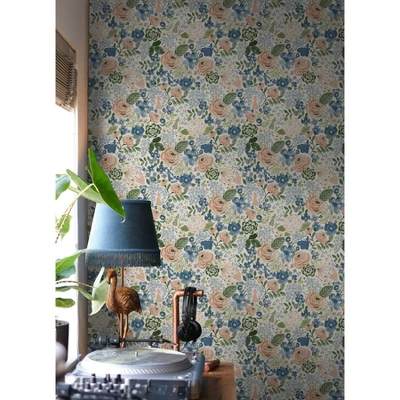 This modern watercolor floral print features the silhouettes of the classic Disney Princess characters among a painterly cottage garden. Featuring Disney’s Cinderella, Aurora, Rapunzel, Ariel, and Snow White, this print is a magical element for any Disney Princess fan’s space. Installation is as simple as Peel, Stick…Done!® Disney Princess Blue Watercolor Floral Peel and Stick Wallpaper comes on one roll that measures 20.5 inches wide by 18 feet long.
