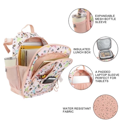 - Back To School Combo Set: This 4-piece combo set includes everything you need for success at school: a 16″ adaptive backpack, insulated lunch box, matching pencil pouch, and a carabiner for attaching it all together.