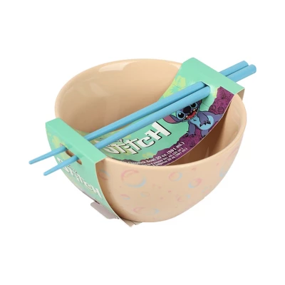 Enjoy your favorite ramen with this tan Disney Stitch 20 oz ramen bowl, featuring a playful wrap-around bubble design and an interior image of Stitch holding a boba tea. Made from high-quality stoneware, this bowl holds 20 oz and includes a pair of blue plastic chopsticks. Measuring 2.88″ x 2.48″ x 3.82″, it is microwave and top-rack dishwasher safe, making it both stylish and practical for everyday use.This ceramic ramen bowl has a wide mouth opening and can be used for, rice, soup, noodles, ice cream, fruit, cereal, or whatever your heart desires.