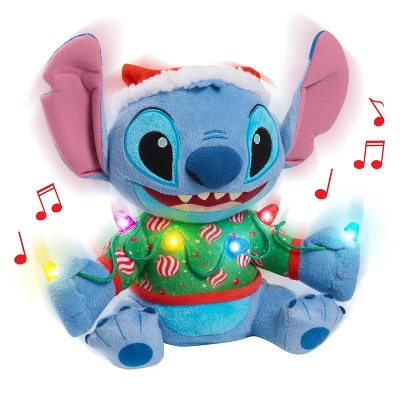 - Perfect Addition to Any Stuffed Animal Collection: Sparkle and shine this season with the super snuggly Disney Holiday Lights Feature Plush Stitch – complete with music, lights, and movement.