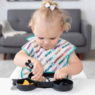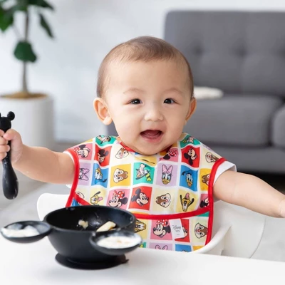 Earn the ultimate squad goals with this set of Bumkins SuperBibs featuring Disney’s Mickey and Friends, the Excellent Eight! Perfect for little eaters transitioning from purees to soft foods and solids during baby-led weaning. Bibs attach over the back of the shoulder with hook and loop for a quick, adjustable, tug-proof fit. The crumb catcher pocket helps to catch drips, drops, and spills. Made from Bumkins’ original lightweight fabric that is soft and comfortable. Constructed with single-ply fabric to prevent icky stuff from growing between layers. Fabric is waterproof and stain-resistant. Rinsing with cold water is recommended as soon as mealtime is over. To prolong the life of Bumkins SuperBibs, air drying the quick-dry fabric is recommended.