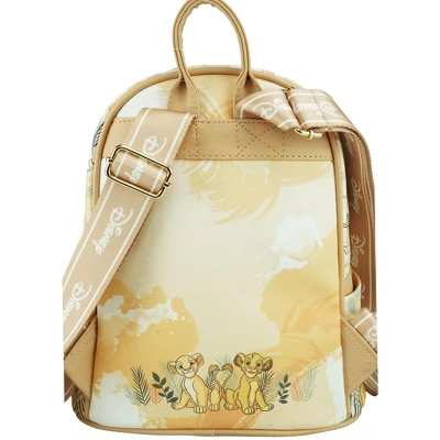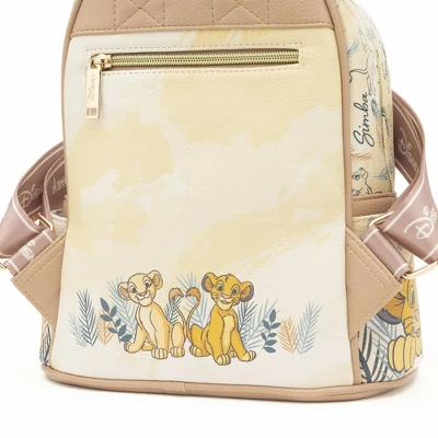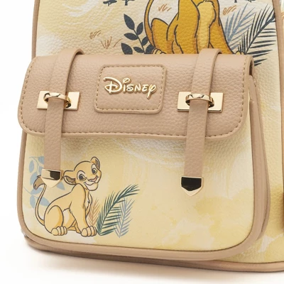 This colorful mini backpack features the adorable baby Simba from The Lion King. It has fabric straps that are great for putting pins on. Backpack measures – 11″H x 8.5″W x 4″D with a front pocket that measures – 6 1/2″W x 4 1/4″H x 1″D. Made of faux leather with satin nylon lining and metal hardware zipper main compartment.