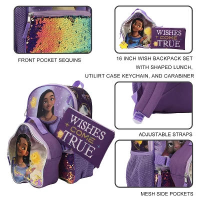 - OFFICIALLY LICENSED: 100% authentic, this 5-piece Disney Wish backpack set is perfect for any little fan of Disney Wish!