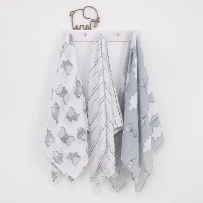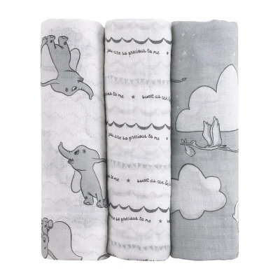 - The Dumbo 3pc Swaddle Set Includes a set of 3 muslin swaddle baby blankets