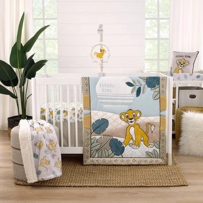 Provide comfort and style to your changing area with the Disney Lion King Future King Contoured Changing Pad Cover. Beautifully designed in ivory, sage, and teal with a golden Simba romping through the leaves! Fits onto a standard size contoured changing pad and measures 16″ x 32″ x 6″. Made with super soft snuggle fabrics. Machine washable for easy care. Coordinates with a complete line of Lion King Future King bedding and accessories!