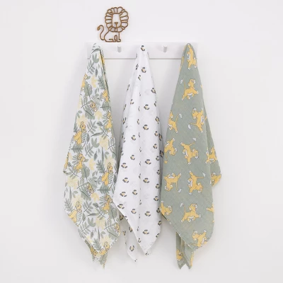 - The Lion King 3pc Swaddle Set Includes a set of 3 muslin swaddle baby blankets