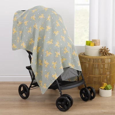 Wrap your little one in love, with the super soft Disney Lion King 3 Piece Muslin Swaddle Set! This adorable set of swaddle baby blankets measures 44″ x 44″ each. Features 3 prints of Simba in fun poses, one is a jungle pattern with smiling Simba peeking from behind palm leaves, another with Simba on a sage background, and one in a playful allover cheetah pattern. Designed in shades of sage, yellow, brown, and white. This blanket is made of 100% cotton muslin and is the perfect size for swaddling. Makes a wonderful gift for your little bundle of joy!