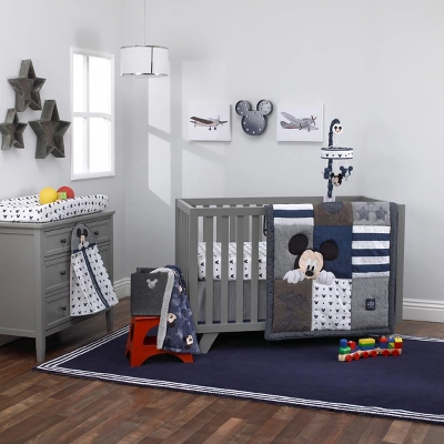 - Coordinates with a full line of Mickey Mouse Hello World nursery crib bedding and accessories by Disney Baby