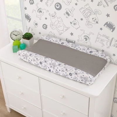 - This Changing Pad Cover has a fun Monsters, Inc. pattern on the border, with a soft plush center panel