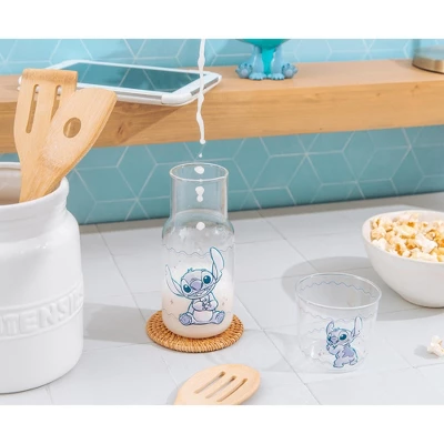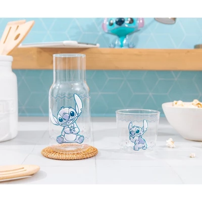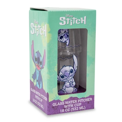 - BOTTOMS UP: Satisfy your thirst for cuteness with this fun Disney Lilo & Stitch glass pitcher and cup set!