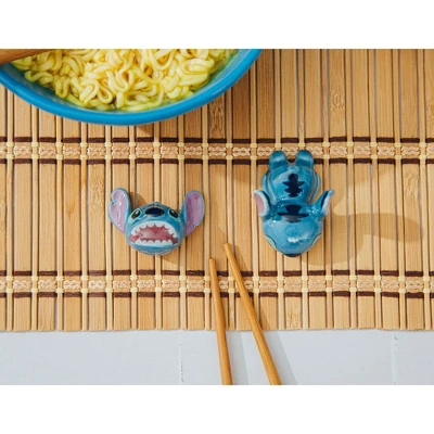 - FUN & FUNCTIONAL: Set includes two pairs of chopsticks with a fun Stitch theme. Set comes with a pair of matching ceramic chopstick rests!