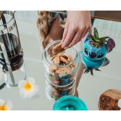 Stash your snacks in style with this fun Disney Lilo & Stitch snack jar! Fun and functional, this snack jar makes a great conversation piece in your kitchen. Officially licensed. Produced by Silver Buffalo, a trendsetting housewares and home decor company based in the heart of New York City. A Toynk exclusive!