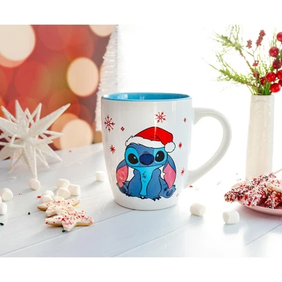- TRENDY DRINKWARE: Fun Disney-themed mug featuring Stitch celebrating Christmas dressed as Santa!