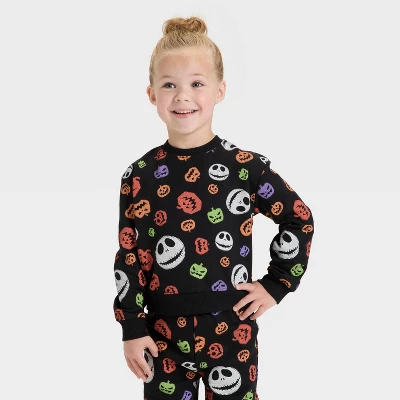Get your little one festive-ready with the Toddler 2pc Disney Nightmare Before Christmas Halloween Fleece Sweatshirt & Pant Set in Black. This cozy set includes a hip-length fleece sweatshirt featuring an adorable Halloween-themed Disney graphic, paired with matching jogger pants for a complete, comfy look. Made from soft midweight fleece with 2×2 rib detailing, it keeps your kid warm while allowing for easy movement during all her adventures. The joggers feature a pull-on design with a full waistband elastic for a snug, comfy fit, making this set perfect for pumpkin patches, costume parties or cozy nights in.