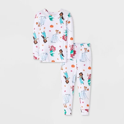 Let your little one drift off into a good night’s sleep with the Toddler Girls’ 2pc Disney Princess Long Sleeve Halloween Viscose Snug Fit Pajama Set in White. Featuring iconic graphics, this cozy pajama set brings storytime fun right to bedtime. The long-sleeve sleep shirt and matching full-length pajama pants are crafted from soft knit viscose for a breathable, comfy feel. With a snug fit for safety and a full elastic waistband for easy movement, this set is perfect for little mischief-makers ready to relax after a day full of adventures.